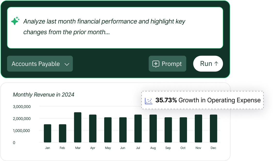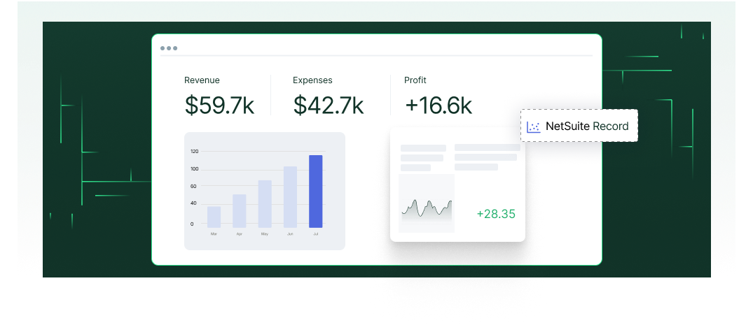 Your finance data doesn’t stop at NetSuite. Copilot combines data from your ERP, CRM, payroll, and contracts into one cohesive view—so you can reconcile, analyze, and act with crystal clear clarity.