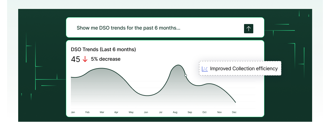 Type questions like "Show me AR aging by customer." Get structured reports with charts and the ability to drill into details.