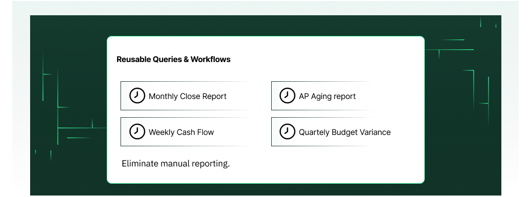 Ask complex finance questions in plain English. Get verified answers with complete source links across AP, AR, GL, and Inventory.